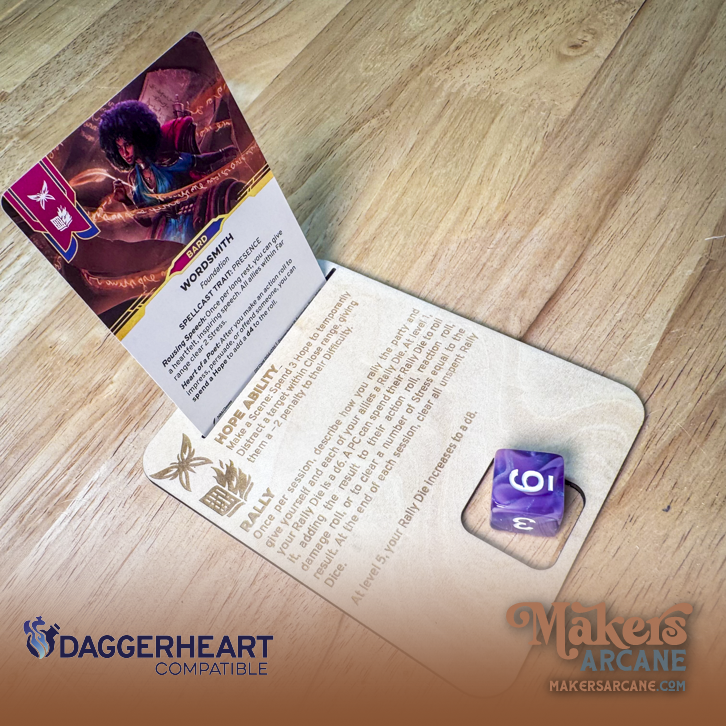 Every great tale needs a Bard—and every Bard deserves a loyal Sidekick. Crafted for use with the Daggerheart RPG, this class-specific board keeps your Bard’s powers and presence organized so you can focus on inspiring your allies and dazzling the crowd.