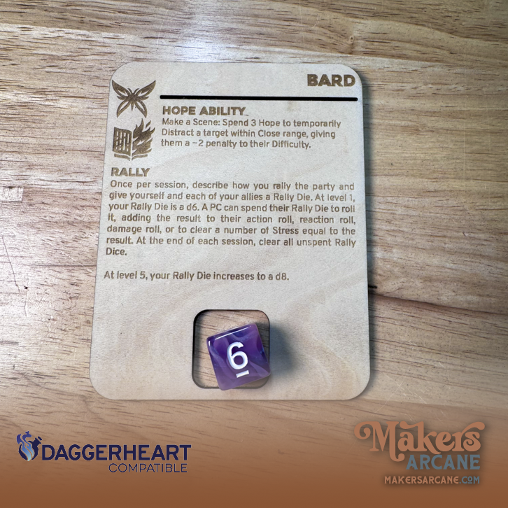 ✨ Hope Ability Reference – Never lose track of your Bard’s defining talent. The Hope Ability is etched into the board so it’s always ready to call upon.