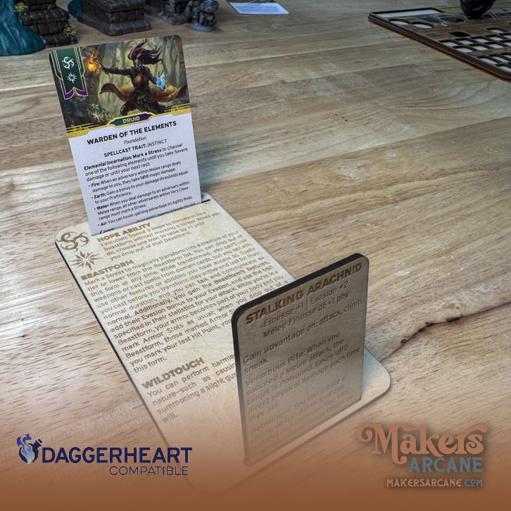 Harness the wild and transform with ease using the Druid Sidekick Board, designed for Daggerheart adventurers who walk between the natural and mystical worlds. Built to pair seamlessly with our Player Boards, this sidekick keeps your class abilities organized and your Beastform transformations effortless.