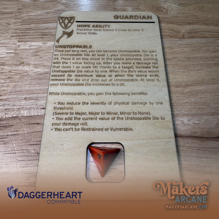 Hope Ability Reference – Your Guardian’s unique Hope Ability engraved directly on the board.